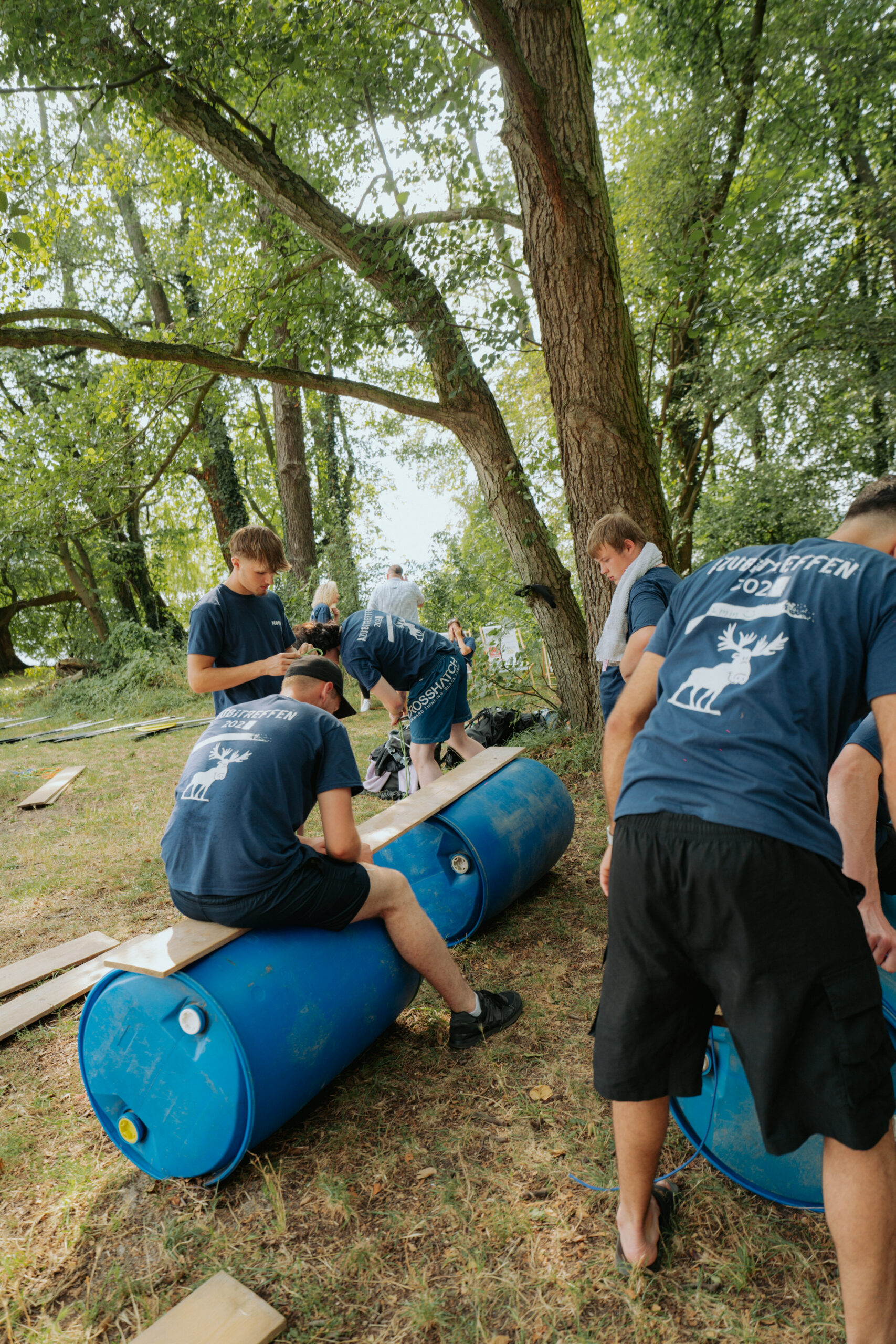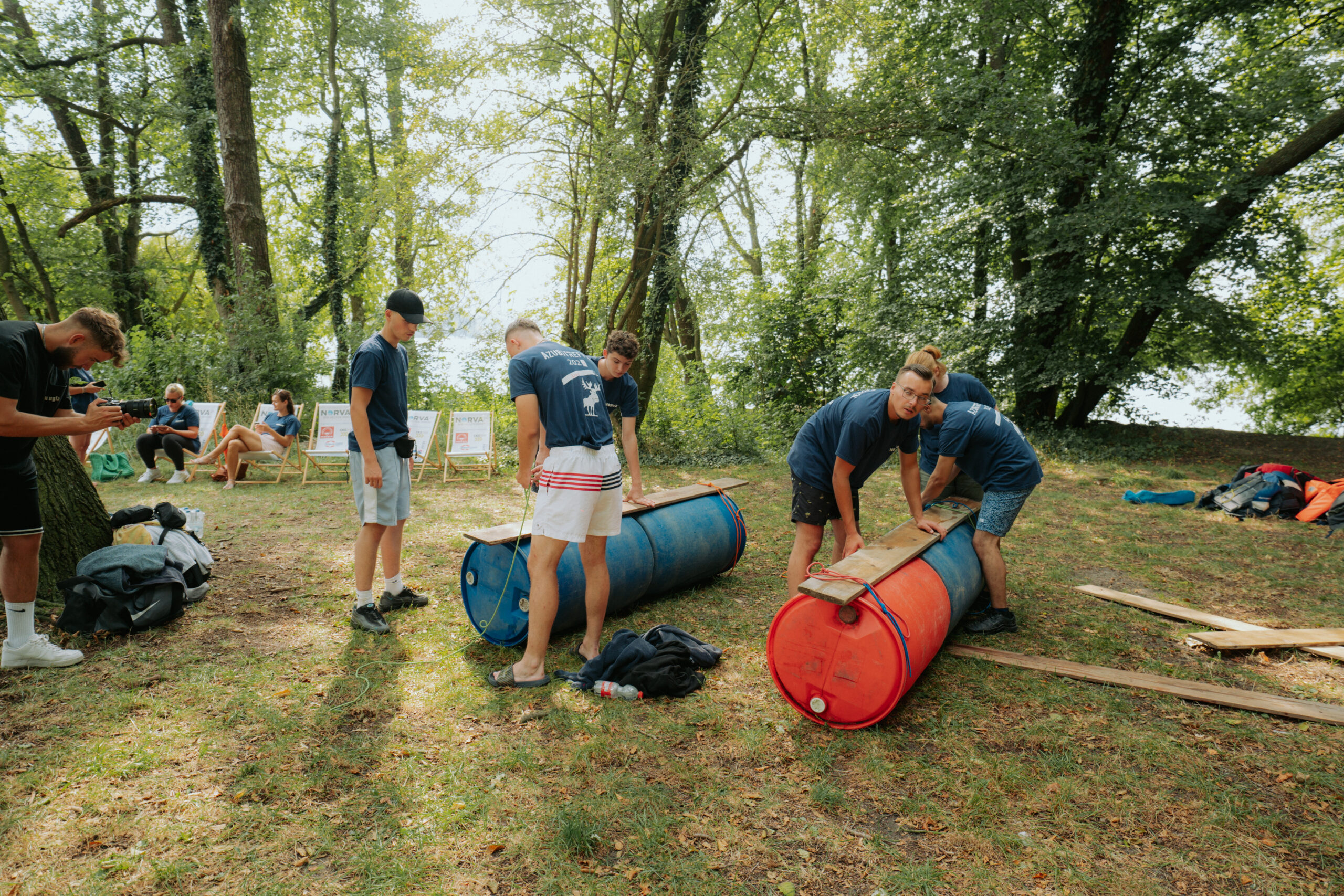 Nach dem Seminar erwartete die Auszubildenden ein Highlight der besonderen Art: ein Floßbau-Wettbewerb. In Teams konstruierten die Azubis ihre eigenen Flöße, die im Anschluss einem großen Wettrennen auf dem See standhalten mussten. Die Herausforderung, gemeinsam ein stabiles Floß zu bauen und es dann auch erfolgreich zu steuern, förderte nicht nur Teamarbeit, sondern auch kreative Problemlösungsfähigkeiten und Zusammenhalt.